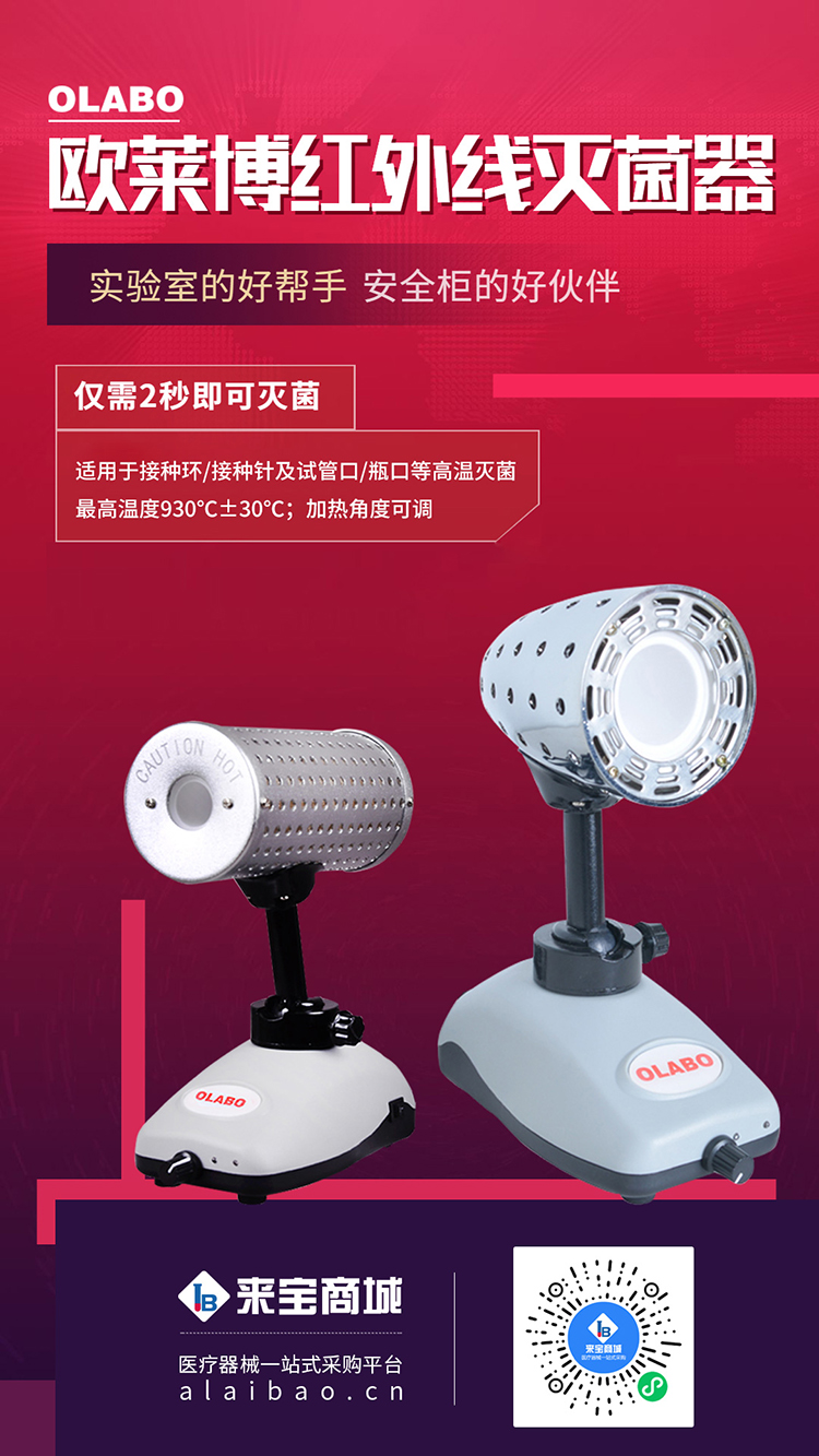 歐萊博紅外線滅菌器,替代酒精燈,實驗室的好幫手,安全柜的“好伙伴”,方便快捷,高效滅菌,節(jié)能省時,庫存充足,下單即可發(fā)貨!與加熱體搭配購買更有優(yōu)惠政策哦~大家快快行動起來!