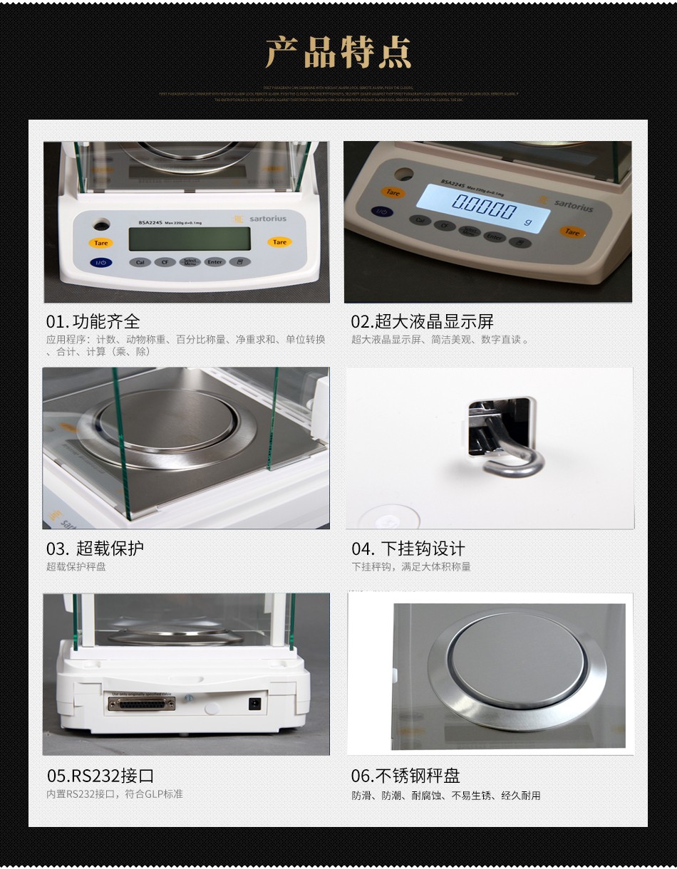 ● 內(nèi)置RS232接口,符合GLP標準