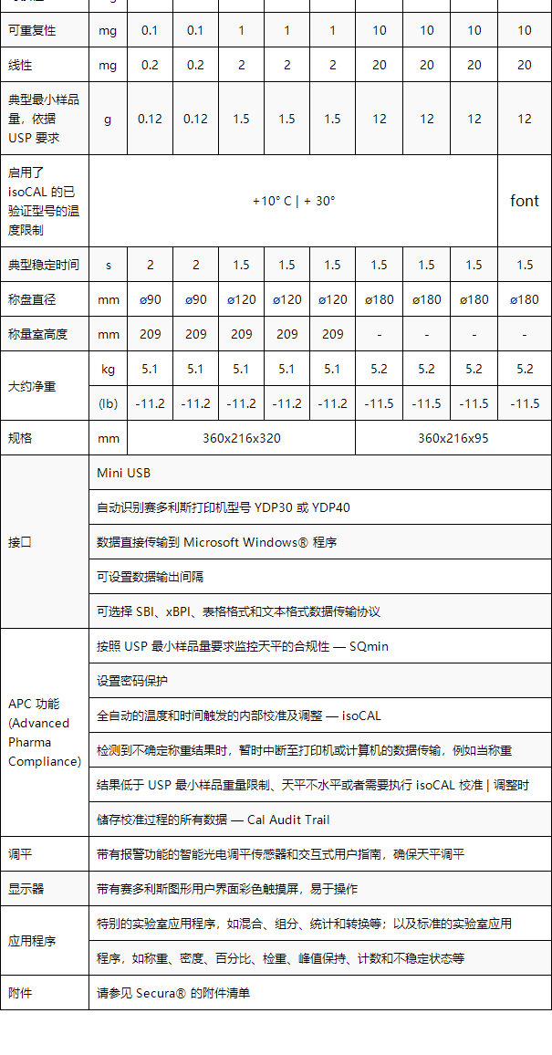 全新的Secura 系列電子天平符合 USP 最小樣品量要求, 確保了操作過程的一律可靠性。